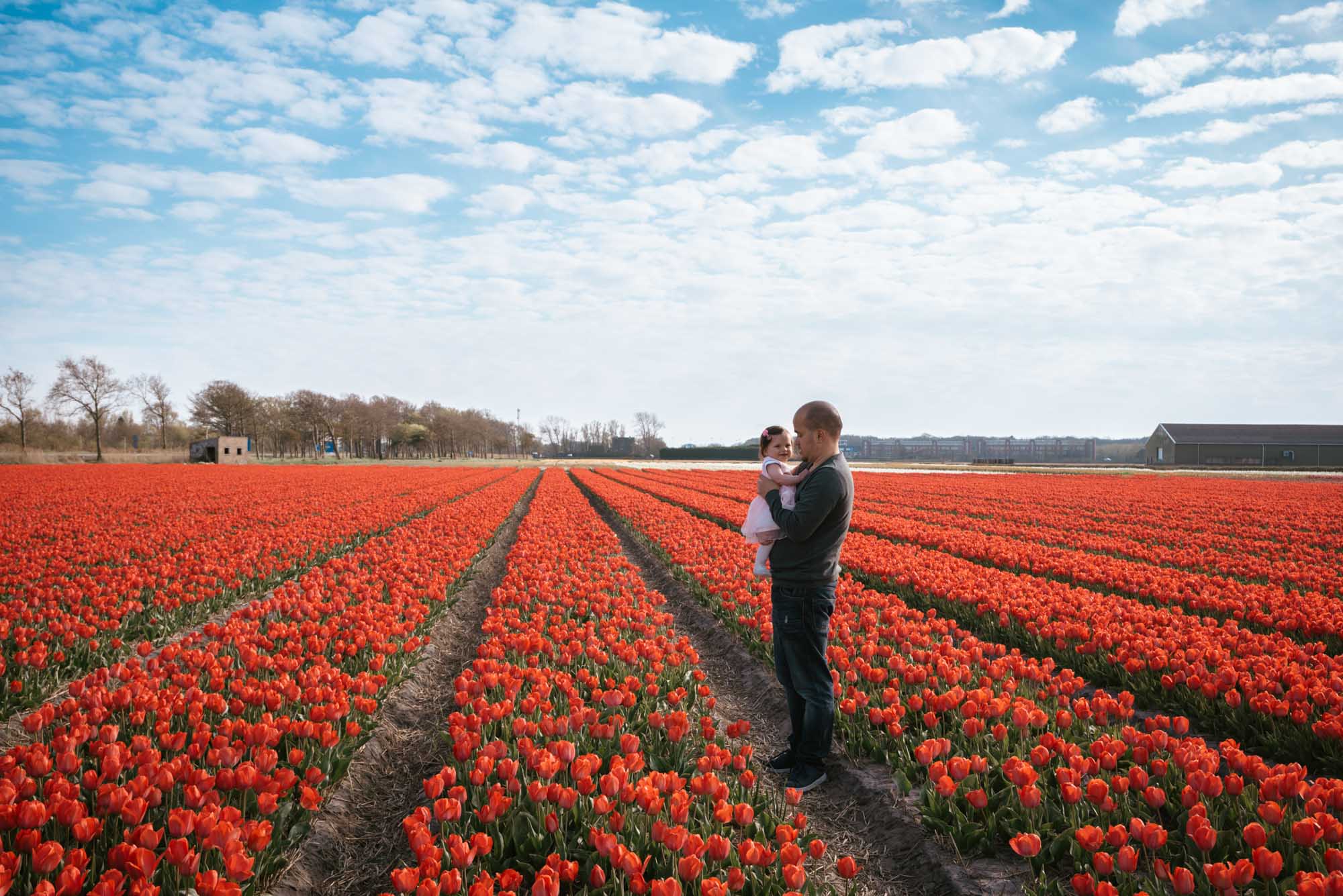 Dutch spring weather can be unpredictable! If there’s heavy rain or strong winds, we’ll reschedule to another date during the season. Light clouds or overcast skies actually create beautiful, soft lighting for photos. I always have backup dates available and stay flexible during tulip season.