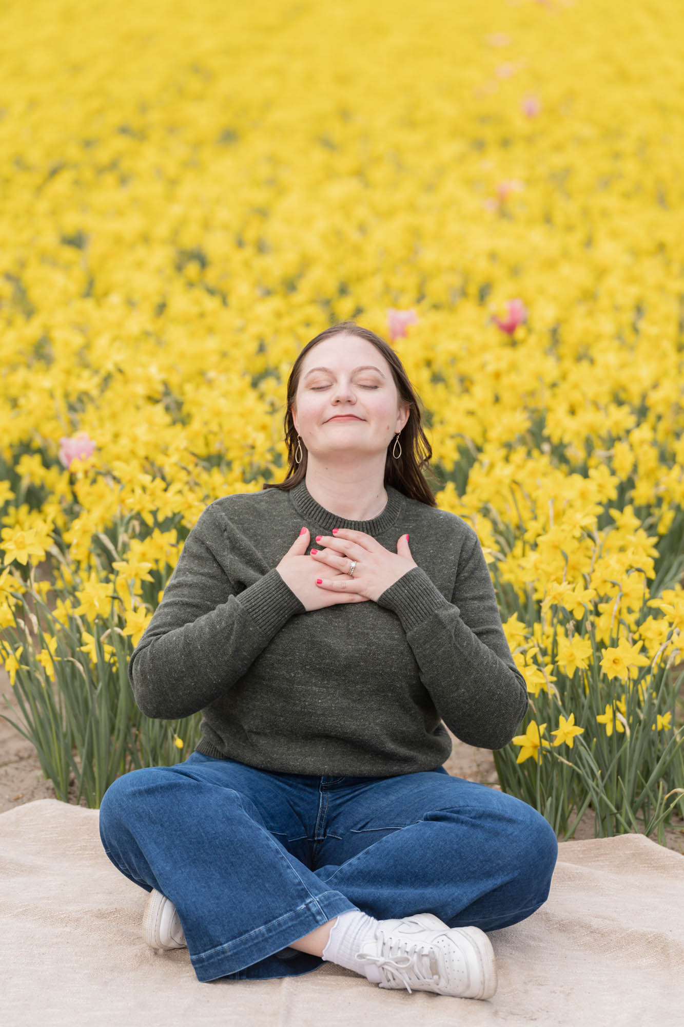 Light, spring colors work beautifully – whites, creams, soft blues, pastels, or even denim. Flowy dresses, light layers, and comfortable shoes are ideal since we’ll be walking through fields. I’ll send a complete style guide after booking.